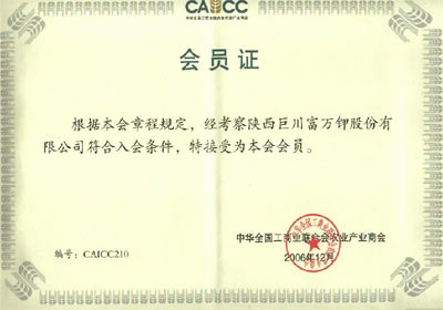 鑒于富萬鉀有機鉀肥在農業上的發展和環境保護方面的突出作用,經“中華全國工商業聯合會農業產業商會”考察,“陜西巨川富萬鉀公司”符合入會條件2006年月12月被吸收為會員。