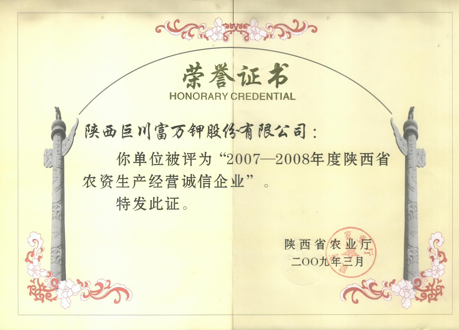 公司被評為“2007-2008年度農資生產經營誠信企業”