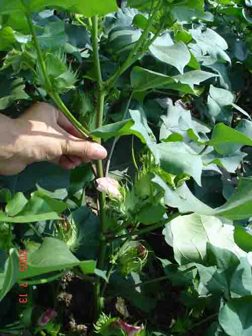 使用富萬鉀的棉花秋桃多得需竹桿撐------湖北鄂州市耙鋪村一組